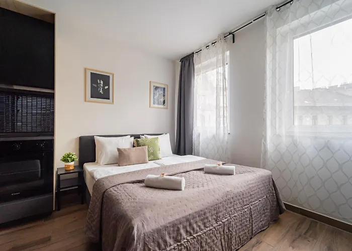 Profitez de la cuisine fournie dans l'appartement et équipée d'un four pour votre confort. La station de métro la plus proche de ces propriétés Eco Apartments - Modern Studio In The City Center est la station de métro Blaha Lujza tér située à 5 minutes de marche.
